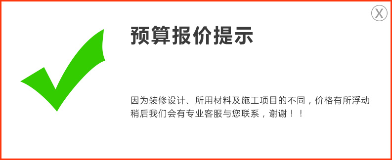 提示:本報價僅供參考,印材料品牌及工程量不同,具體報價以量房實測為準。